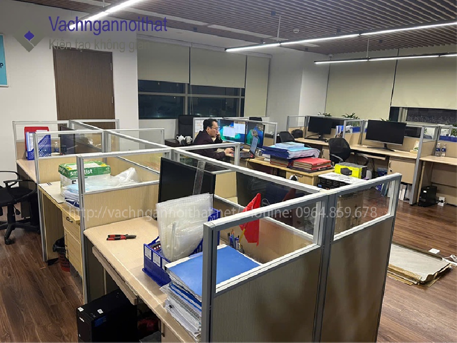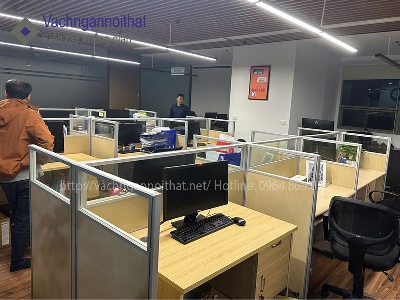 Vách ngăn bàn làm việc gỗ kính T383 thuộc loại vách ngăn module chia bàn nhân viên trong văn phòng tạo không gian độc lập, chuyên nghiệp và gọn gàng.